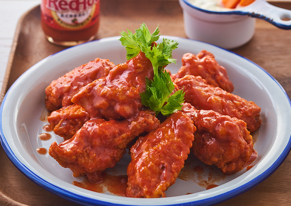 3. 黄油融化,将纷乐味美式调味辣椒汁和黄油在碗里混合成酱汁,将鸡翅和混合好的酱汁拌匀;